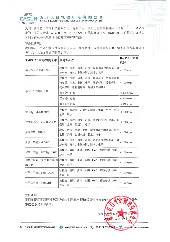 關(guān)于產(chǎn)品符合歐盟RoHS 2.0指令的聲明