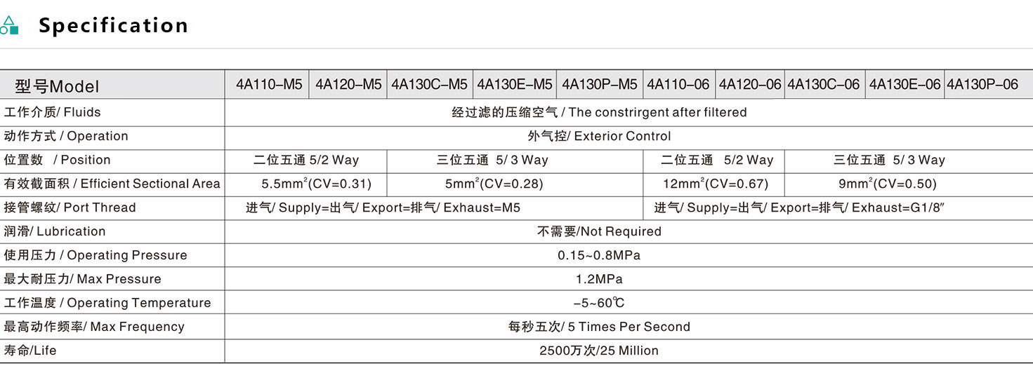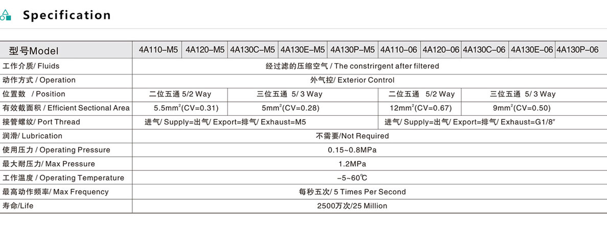 4A1 Series 5/2 Way & 5/3 Way Air Control Valve