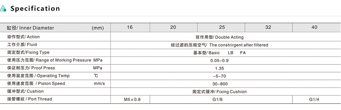EMALD Slim Cylinder of Aluminiium Alloy(Double Rod Type)