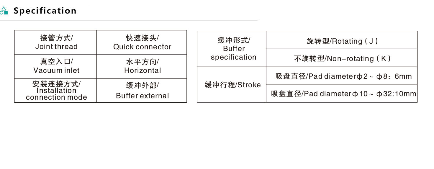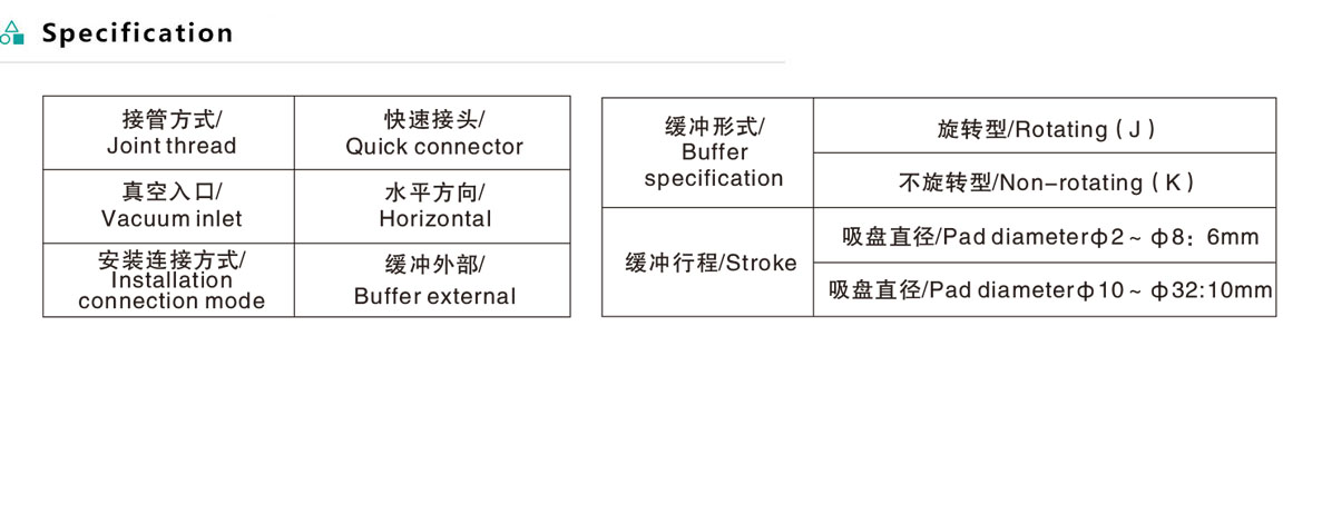 Horizontal vacuum pad with joint thread (with buffer)EZPR series