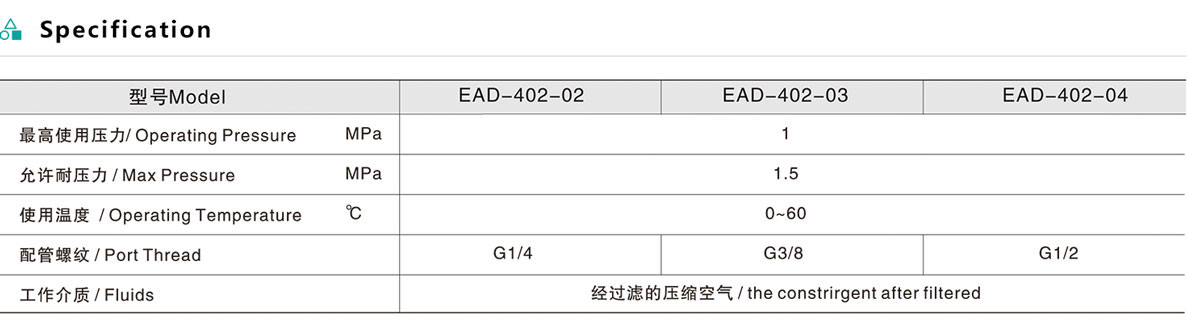 1.Compact size,light weight,good performance,easy use, charming appearance. 2.It adopts the modular connection,it may be used individually or by combination with easy installation.The embedded pressure gauge shortens the mounting time. 3.Manual drain,semi-auto drain (water discharged automatically while air turning off) and fully auto drain for your selection.