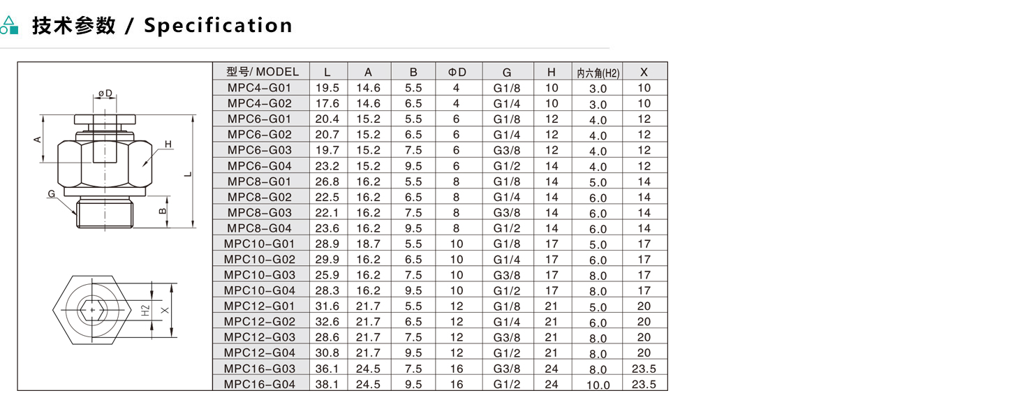 MPC-G 螺紋直通