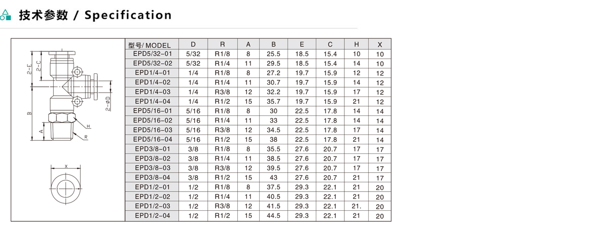EPD/APD T型分支螺紋三通